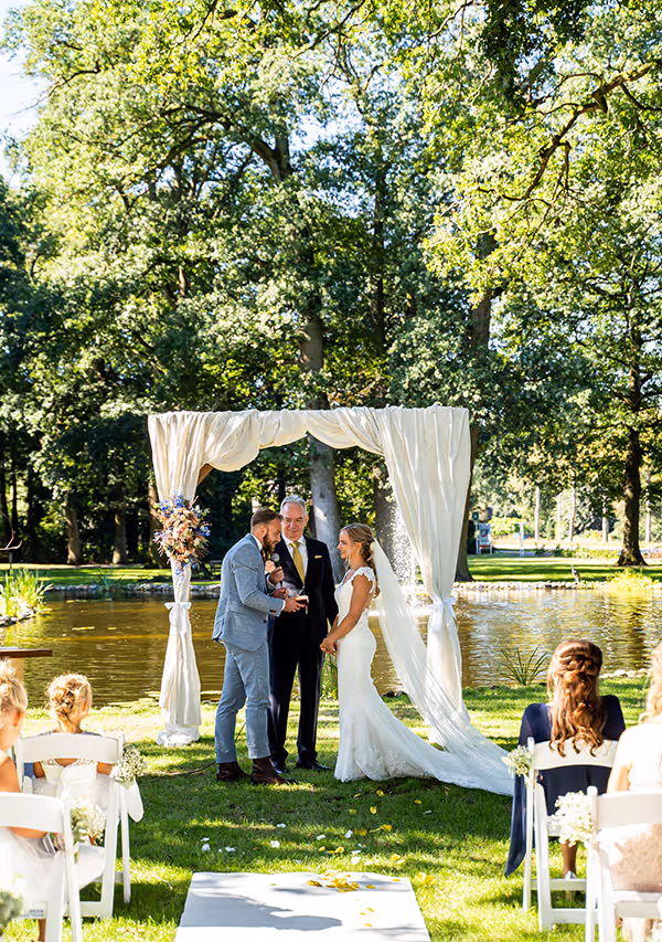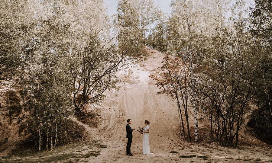 Wij zijn gek op het vieren van de liefde en vooral om de kleinste details daarvan! Een bruiloft waar persoonlijke accenten centraal staan daar worden wij blij van, of stiekem zelfs wel emotioneel ;). Een van de mooiste manieren om dit te doen op jullie trouwdag zijn natuurlijk jullie unieke geloften naar elkaar. Je kunt deze doen op jullie ceremonie in het bijzijn van jullie familie en vrienden. Maar wij snappen ook dat dit misschien moeilijk kan zijn om dit zo ‘en public’ te delen. Wat hiervoor een hele mooie en misschien nog wel veel persoonlijker optie is, om dit te doen wanneer jullie even intiem samen zijn. Bijvoorbeeld bij jullie fotoshoot. De fotograaf en/of videograaf kan dit dan heel mooi vastleggen voor later.