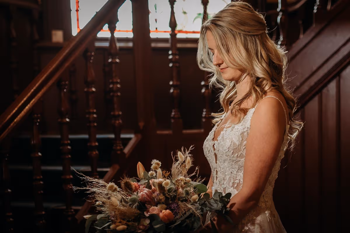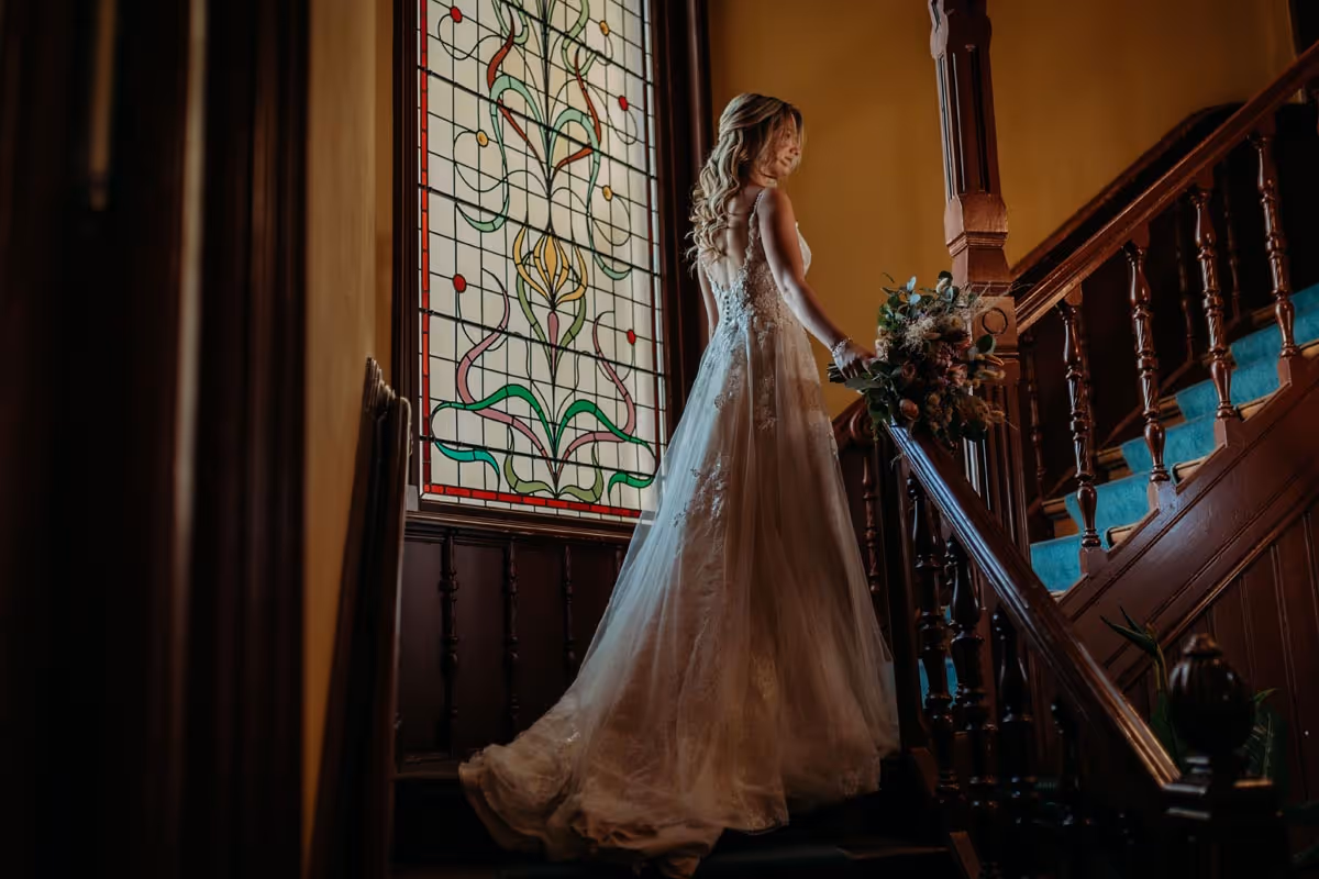 Deze styled shoot vond plaats bij een schitterend pand uit 1885, gelegen in het hart van Hengelo. Het pand is ooit gebouwd voor de familie Stork. Helaas... het is geen officiële trouwlocatie, maar alleen beschikbaar gesteld speciaal voor deze styled shoot. Let ook even op het mooie glas-in-lood raam bij de trap, wij zijn fan! Dus ken jij een plek met mooie ramen maak hier dan zeker even een foto zoals hier. Laat je meeslepen in de prachtige beelden van deze shoot in vintage sfeer met een romantische touch. georganiseerd door Tessa van Tess Art Photo Design. En doe ideëen op voor jullie mooiste dag!