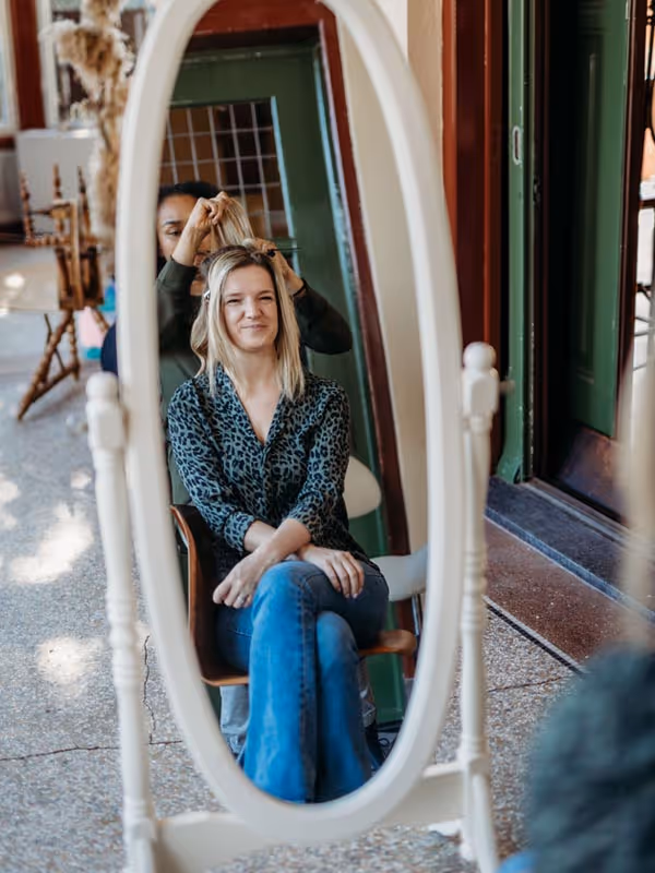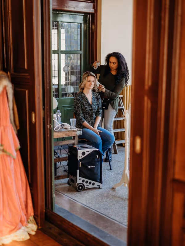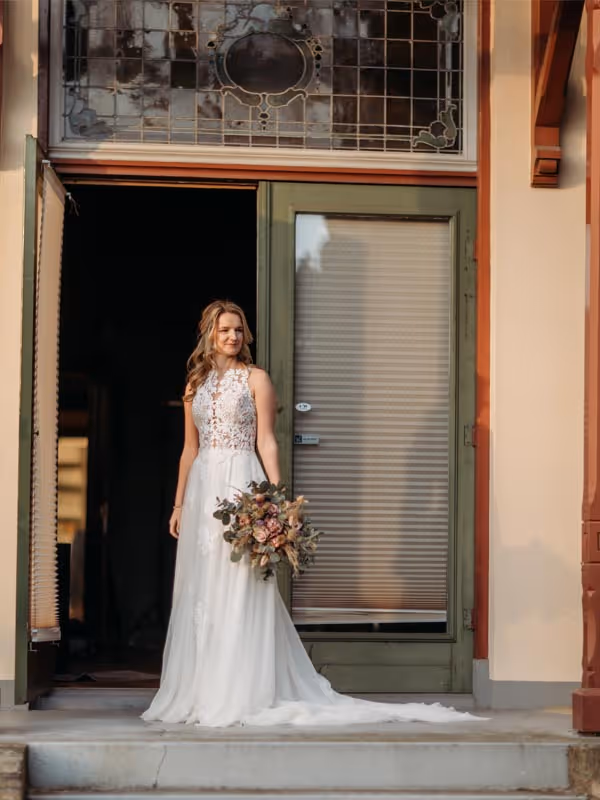De bruid schittert in een prachtige jurk van Bruidsboutique josephine by Brenda. De romantische details van de bloemen passen perfect bij de klassieke locatie. De make-up met natural look en het losse opgestoken hoor door ivonne Martinez passen helemaal in deze vintage sfeer. Wij vinden het prachtig hoe deze historische locatie opgaat in de sfeer van de shoot. Als je goed oplet zie je dat er voor deze shoot zelfs twee verschillende jurken zijn gebruikt, beide van het merk Lilian West.