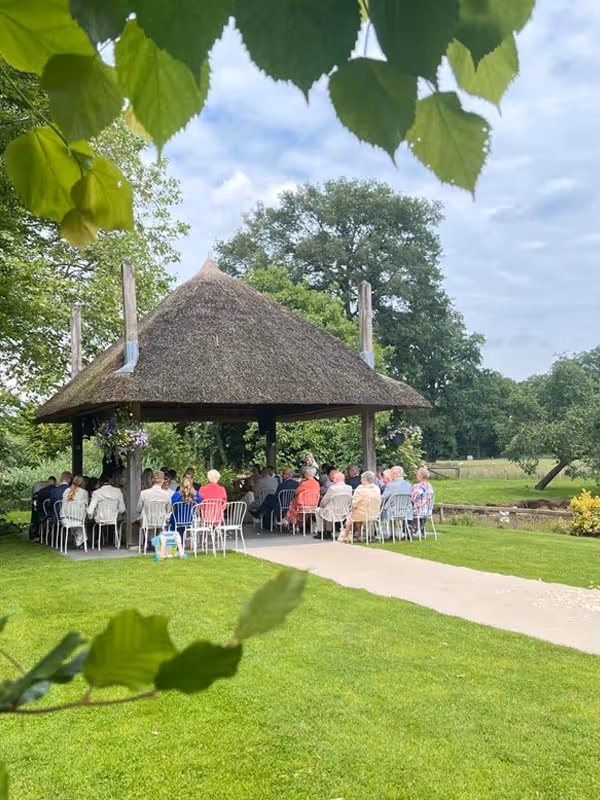 Trouwen onder een authentieke hooiberg? Ook dat kan! Wij beschikken over een trouwhooiberg aan het water, traditioneel gebouwd van eiken gebinten, rondhout sporen en rietgedekt dak. Voor jullie feest hebben wij vele mogelijkheden; maak keuze uit één van de sfeervolle zalen, maak gebruik van ons landelijk terras met loungebanken, geniet van een heerlijk diner, ambachtelijk vers en smaakvol en sluit af met een spectaculair feest. De culinaire gerechten die wij serveren, kunnen jullie van tevoren proeven op onze kosten tijdens het proefdiner en bespreken dan de wijnkeuze met jullie. Bij Landgoed Het Rheins is alles mogelijk!