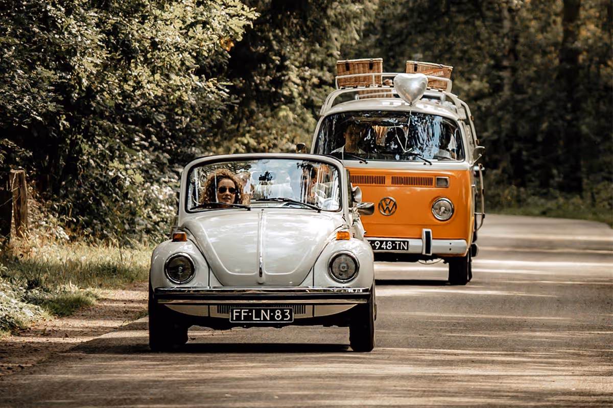We beschikken over een ruim aanbod trouwauto’s waaruit jullie kunnen kiezen. Bijvoorbeeld onze klassieker, de Porsche 356 Speedster. Of heeft jullie bruiloft een echte Italian sfeer? Hiervoor hebben wij een super toffe Fiat 500 uit 1969! Gaan jullie voor een vintage wedding kan dan eens naar onze Volkswagen T1 of T2 busjes. Deze hebben we in meerdere kleuren. En heb jij onze prachtige witte Kever Cabriolet al gezien?