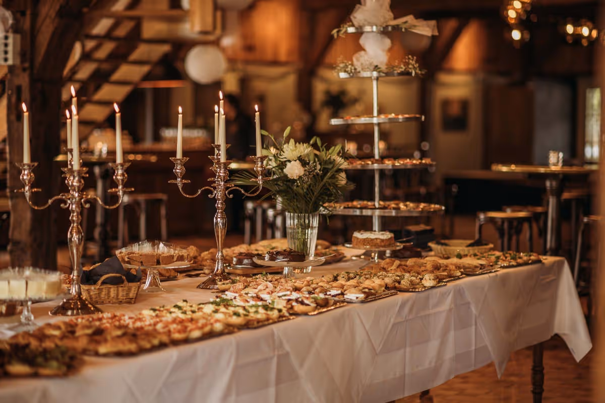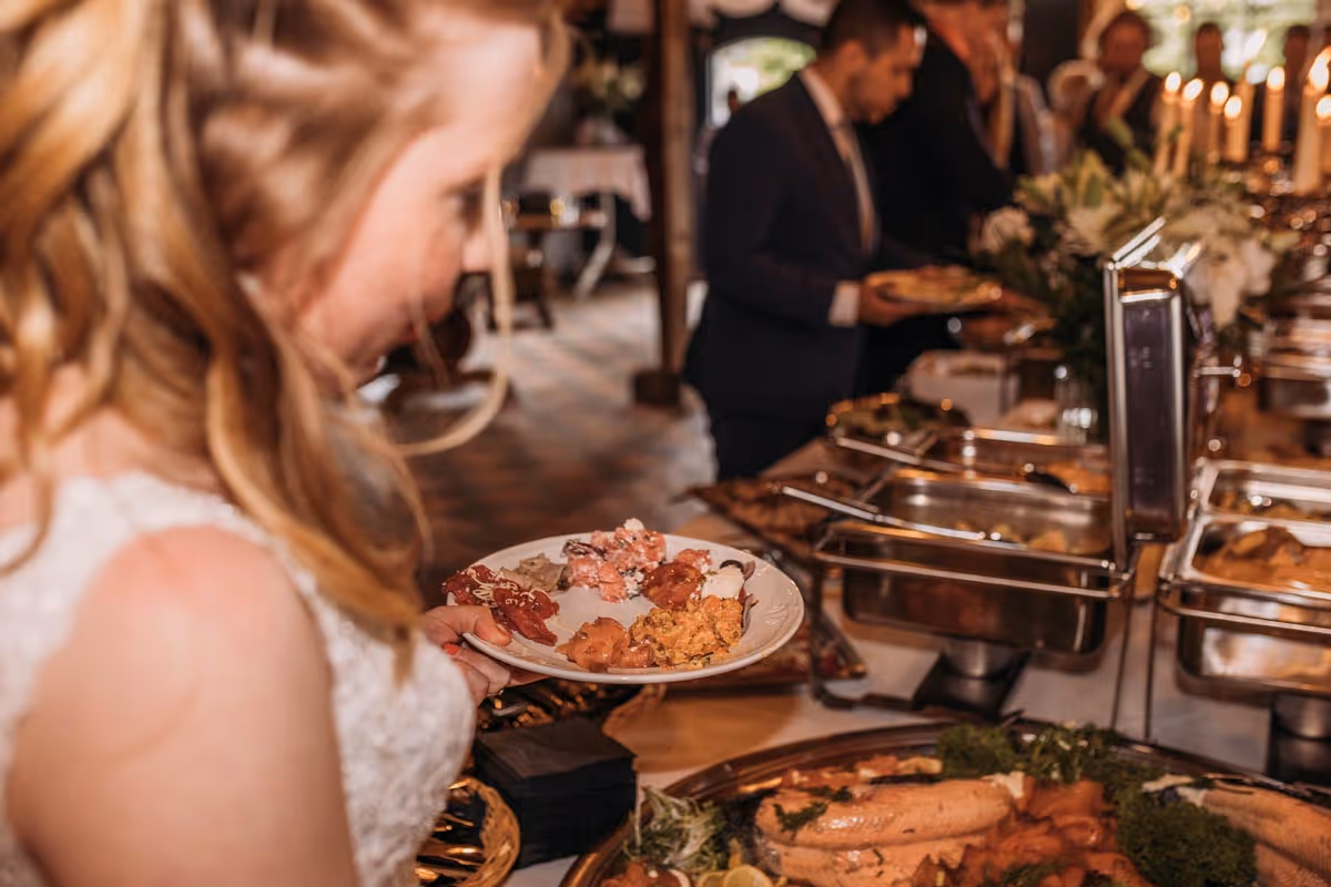 Uitgebreid dineren tijdens jullie bruiloft? Ook dat is mogelijk bij De Gebrande Waateren. Met mooi weer in onze tuin en met minder weer in de Grote Zaal met uitzicht op de tuin. Jullie kiezen zelf het menu, BBQ of buffet? En hebben jullie onze nieuwe Slepkök’n al gezien? Deze is zeer geschikt voor een bijzonder diner vol gezelligheid.