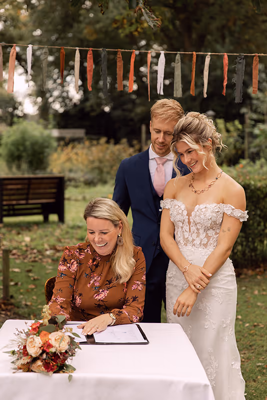 Ik geloof dat jullie liefde uniek is en dat verdient een ceremonie die dat weerspiegelt, eentje die raakt, ontroert, en waar ook lekker om gelachen mag worden. Mijn stijl? Knetterpersoonlijk, warm, een tikkie speels en altijd afgestemd op jullie. Geen toneelstukje, maar een verhaal recht uit het hart. Vol humor, liefde en diepgang. Een ceremonie waar jullie en jullie gasten nog lang met een grote glimlach aan terugdenken.