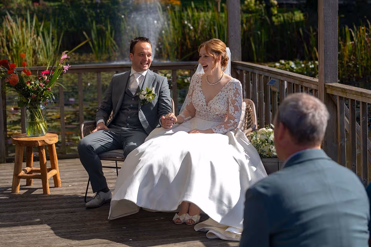 In de voorbereiding, een maand vooraf, neem ik contact op om de dag in detail door te spreken: wat zijn jullie hoogtepunten, welke momenten mogen absoluut niet ontbreken, wie speelt een belangrijke rol, etc. De ideeën die jullie hebben worden verweven in het plan, zodat alles soepel verloopt. Op de dag zelf werk ik met aandacht en rust, zodat jullie kunnen genieten zonder geposeerde stress.