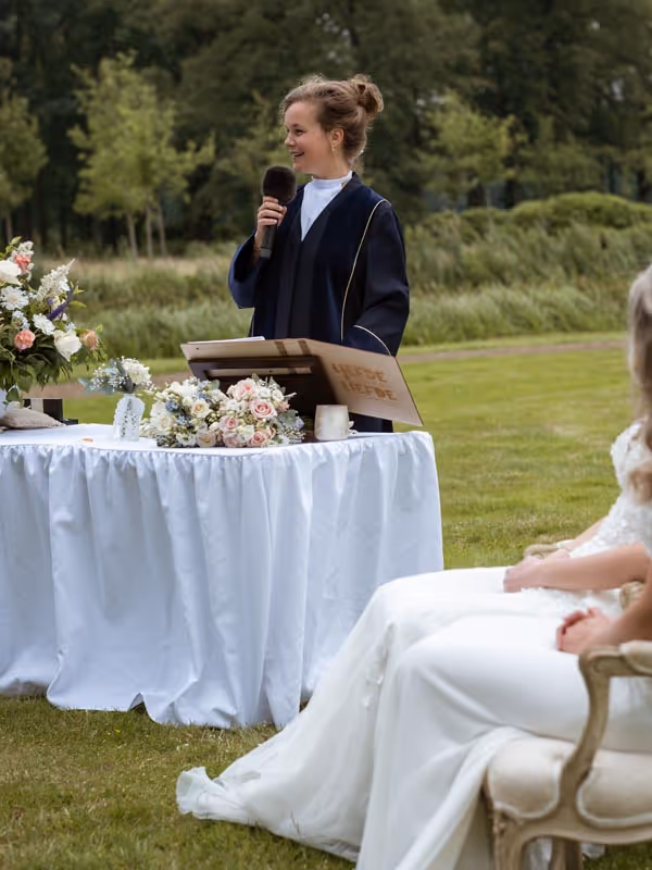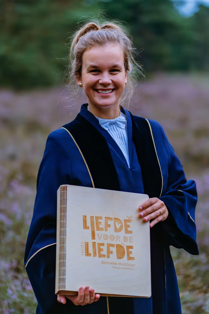Mijn naam is Janneke, 32 jaar en woonachtig in het mooie Twente. Voor de liefde cross ik door heel Nederland. Ik hou van liefdesverhalen en ik ben nu al benieuwd naar jullie versie van de liefde. Tijdens het proces dat we samen ingaan bespreken we ook jullie wensen voor de ceremonie. Misschien weten jullie al goed wat jullie willen of misschien helemaal niet. Beide helemaal goed: we hebben tijd genoeg om alles perfect vorm te geven samen. Ook leren we elkaar door alle gesprekken goed kennen. Dat is fijn want op de mooiste dag van jullie leven is een bekend gezicht héél erg fijn. En hebben jullie kinderen? Ook daar heb ik genoeg ideetjes voor om ze te betrekken bij de ceremonie.