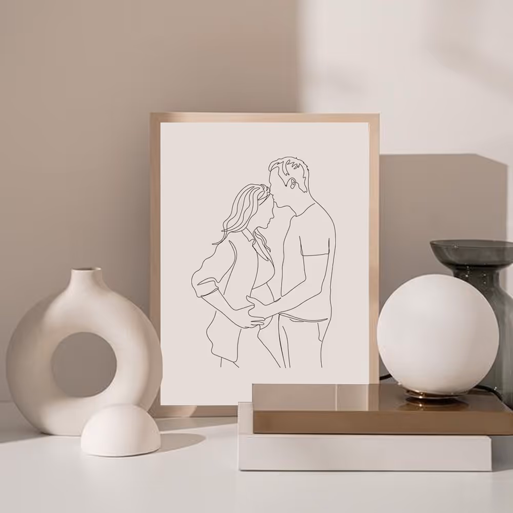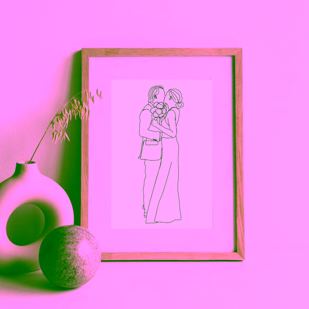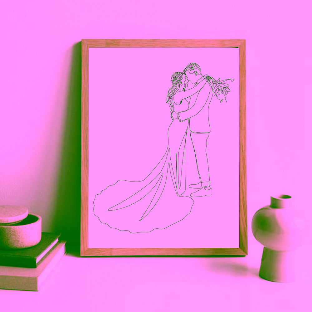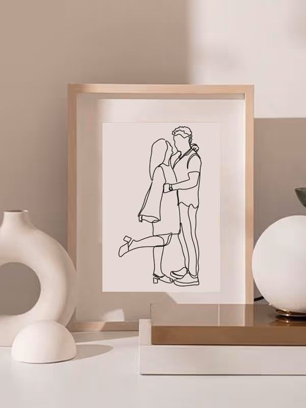 Voor een onvergetelijke herinnering maak ik prachtige lijntekeningen die jullie unieke liefdesverhaal vastleggen. Elk kunstwerk is volledig op maat en vangt jullie mooiste momenten, zoals de eerste dans of een liefdevolle omhelzing, in stijlvolle, minimalistische lijnen.