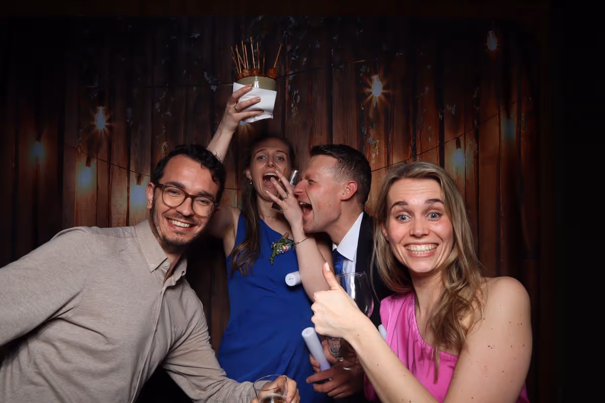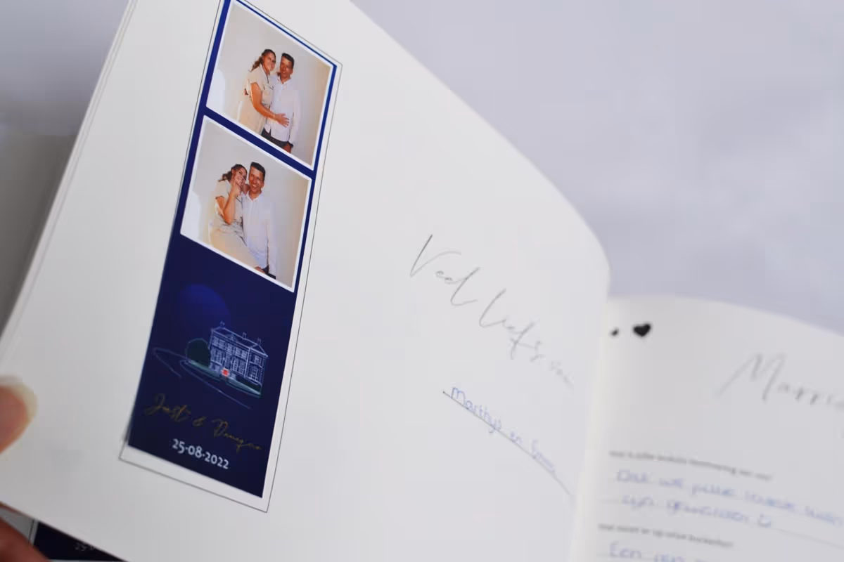 Combineer de foto strips met ons gastenboek (met vragen!). Bij een blanco boek krijg je vaak een standaard tekst. Maar met de vragen in ons gastenboek krijg je soms de leukste antwoorden! En uiteraard is er ruimte om de fotostrip direct op te plakken. Waarom stoppen als het leuk wordt? De PicMe Photobooth huur je altijd voor onbeperkte tijd. Zo kunnen jij en je gasten nog langer genieten van het foto’s maken. Aan het einde van de avond worden de foto’s steeds leuker, gekker en soms zelfs een tikkeltje gênant. En wat leuk is dat de gasten vaak niet weten dat jij alle foto’s ook digitaal ontvangt ;).