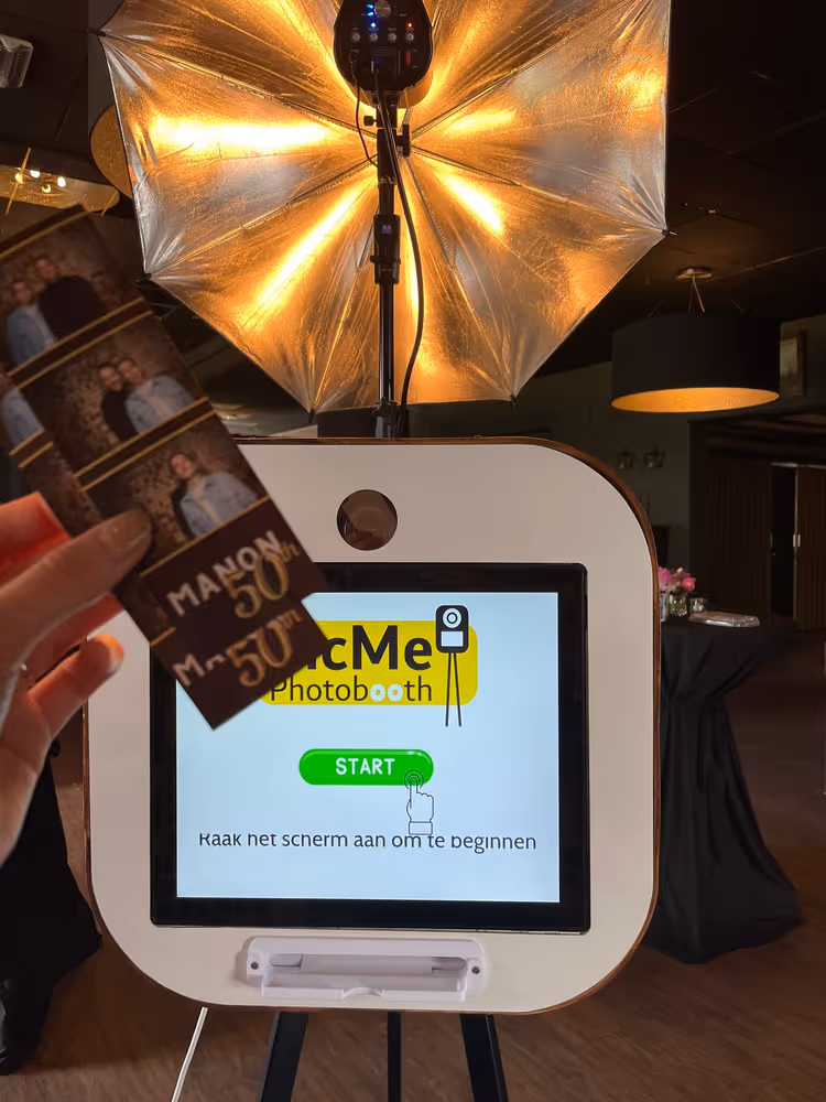 Met de PicMe Photobooth brengen jullie je gasten in de juiste stemming en wordt jullie bruiloft één groot feest! De photobooth is uitgerust met een professionele camera die er voor zorgt dat jullie foto’s in een hoge kwaliteit worden afgedrukt. En dat binnen 12 seconden! Van jong tot oud iedereen vindt het leuk om gebruik te maken van de photobooth. Met de foto strips die standaard dubbel worden geprint hebben jullie gasten direct een tastbare foto van deze fantastische dag.