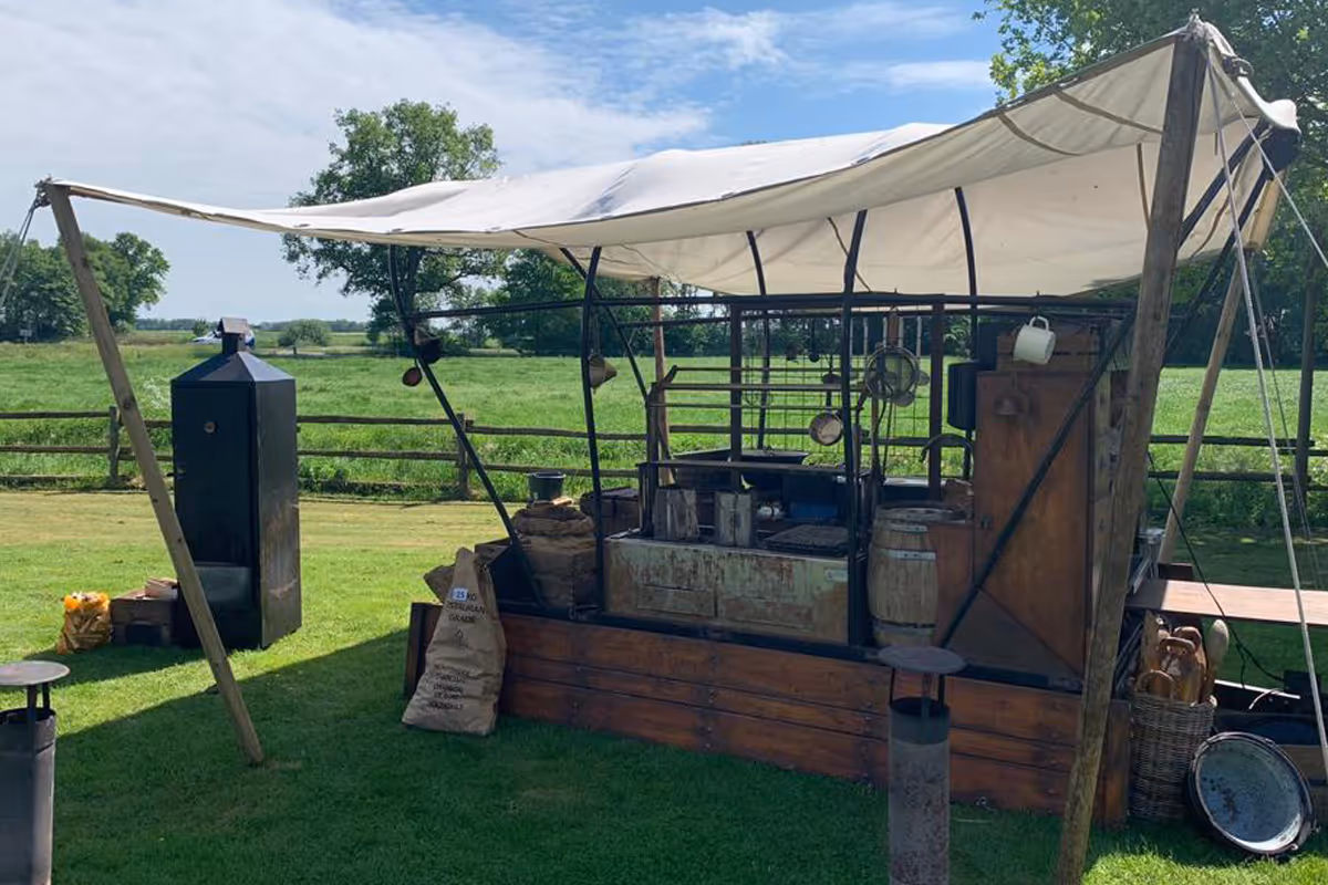 Zijn jullie op zoek naar een unieke cateraar voor jullie bruiloft? Zoek dan niet verder. Wij beschikken over verschillende mooie foodtrucks voor een echte festival style bruiloft. Een chuckwagon die we op locatie kunnen uitvouwen waarop wij allerlei gerechten kunnen maken. Ook hebben wij een hele stoere blauwe ford uit 1945. Deze ford is echt een eye catcher op jullie dag en maakt de festival look helemaal compleet. Het is dus niet alleen een mooie wagen waar we de lekkerste gerechten voor jullie en jullie gasten in kunnen bereiden, maar ook gelijk een mooie aankleding voor de locatie van jullie bruiloft!